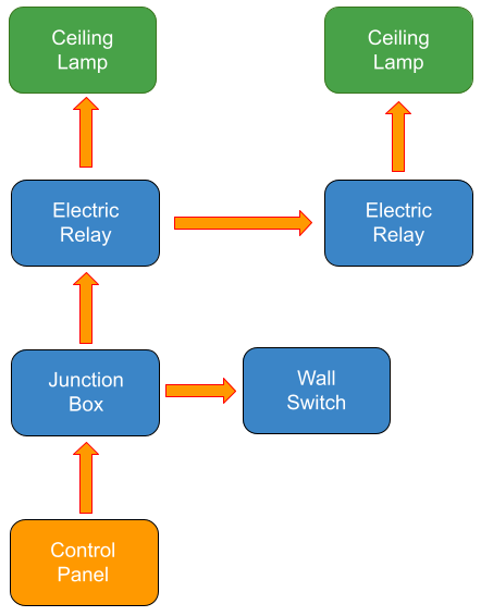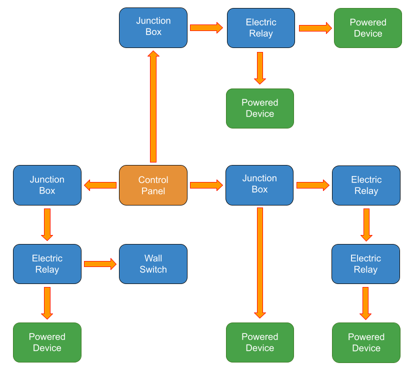 | Electrical Relay | Routes the Power from a Junction Box or from another Electrical Relay to one or more Electrical Relays and/or to one or more power-consuming end devices |