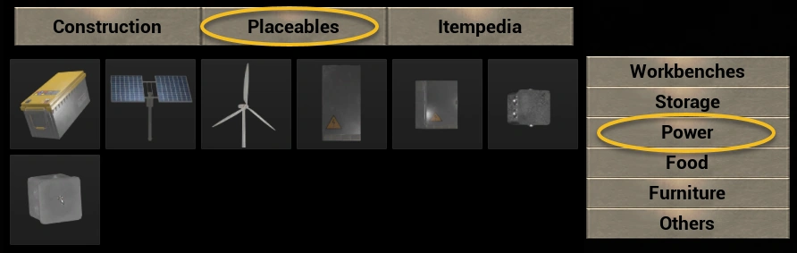 Power that is produced anywhere on the map is fed into an invisible power grid that interfaces with and is managed by the Control Panel. The Control Panel routes electricity to power-consuming devices (e.g. a Fridge) through a hierarchy of wired electrical components. Wires are crafted items that connect the electrical components to each other and to power-consuming devices. At the very least, a player must craft a Control Panel, a Junction Box and a sufficient number of Wires in order to use one or more power-consuming devices.