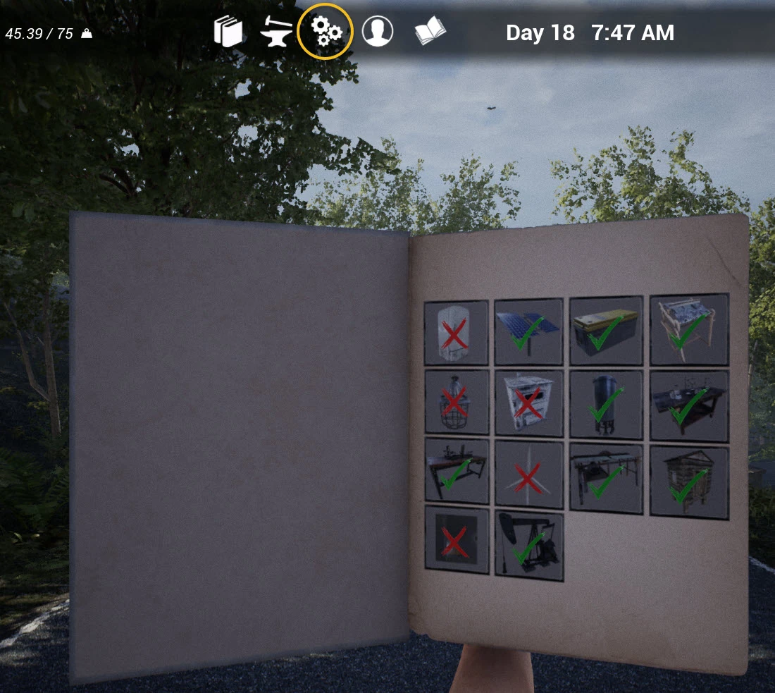 Certain advanced items in the game require special know-how to craft them. The player acquires the necessary expertise by locating the associated Technology Blueprints that spawn in the Villages on the Map. Technology Blueprints that are found have the appearance of blank pages of a book and they are lying on some piece of furniture.