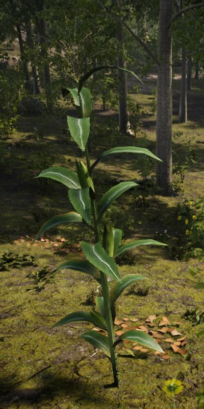 Corn is a vegetable that can be found in the wild on the ground growing in all seasons but winter. It can also be grown in a Plant Bed using Corn Seeds.