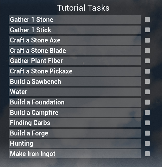 The tips listed here are just one selection of possible things to do and don't have to be followed in the order they are presented in. Some players enjoy having several projects going on at the same time. For example you can place ghost images of several things at once that you intend to build (e.g. Sawbenches, Foundation, Campfire, Shelter, Forges, Bed, Storage Containers, etc.) and "feed" them with the necessary resources as you acquire the resources. Everything can be moved later except Foundations and other components of buildings like Walls, Ceilings, etc. You needn't acquire all resources first, and by using the resources as you gather them you needn't worry about not having room to store them. Other players prefer to do things one at a time, and finish one thing before starting another one. There is no right or wrong way, just personal preference.