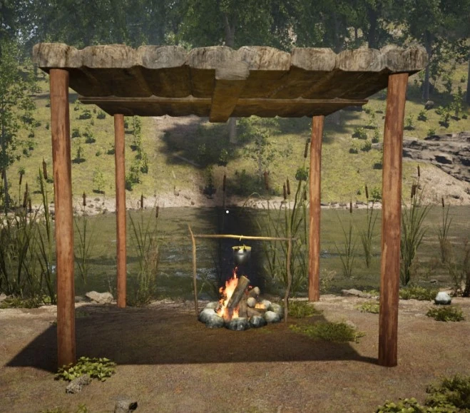 Build a Campfire near a water source. You will be boiling a lot of water on the campfire! (recipe in the Placeables/Food section of the Recipe Book). Build a Shelter over the campfire so that the fire won't go out. (recipe for Shelter is in the Construction section of the Recipe Book).
