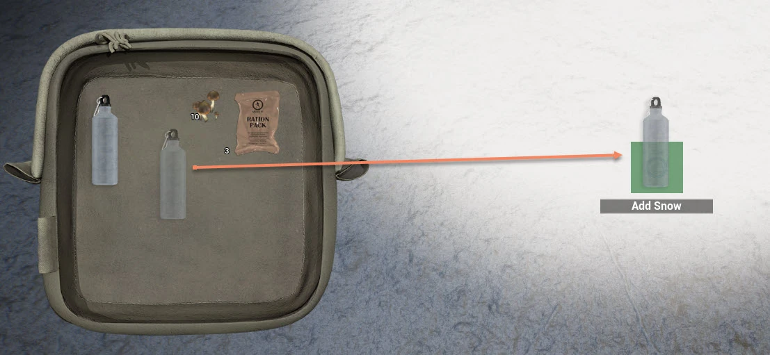 To purify water on a Campfire or in a Pot on the Metal Stove, activate the Campfire or Metal Stove with E (default) and drag any flask containing dirty water to the circle on the Campfire's bucket or to the Pot on the stove. Light the fire in the campfire or stove to boil the water. Finally, collect the clean water by activating the campfire or stove and dragging the flask once again over the circle on the campfire's bucket or the pot.