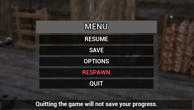 Respawning is an event that takes place when a player's character dies and starts a new life either at their bed or the map's initial spawn point if the player has not yet placed a bed. In the main menu there is a "respawn" option which will cause the character to stop living to allow them to respawn.